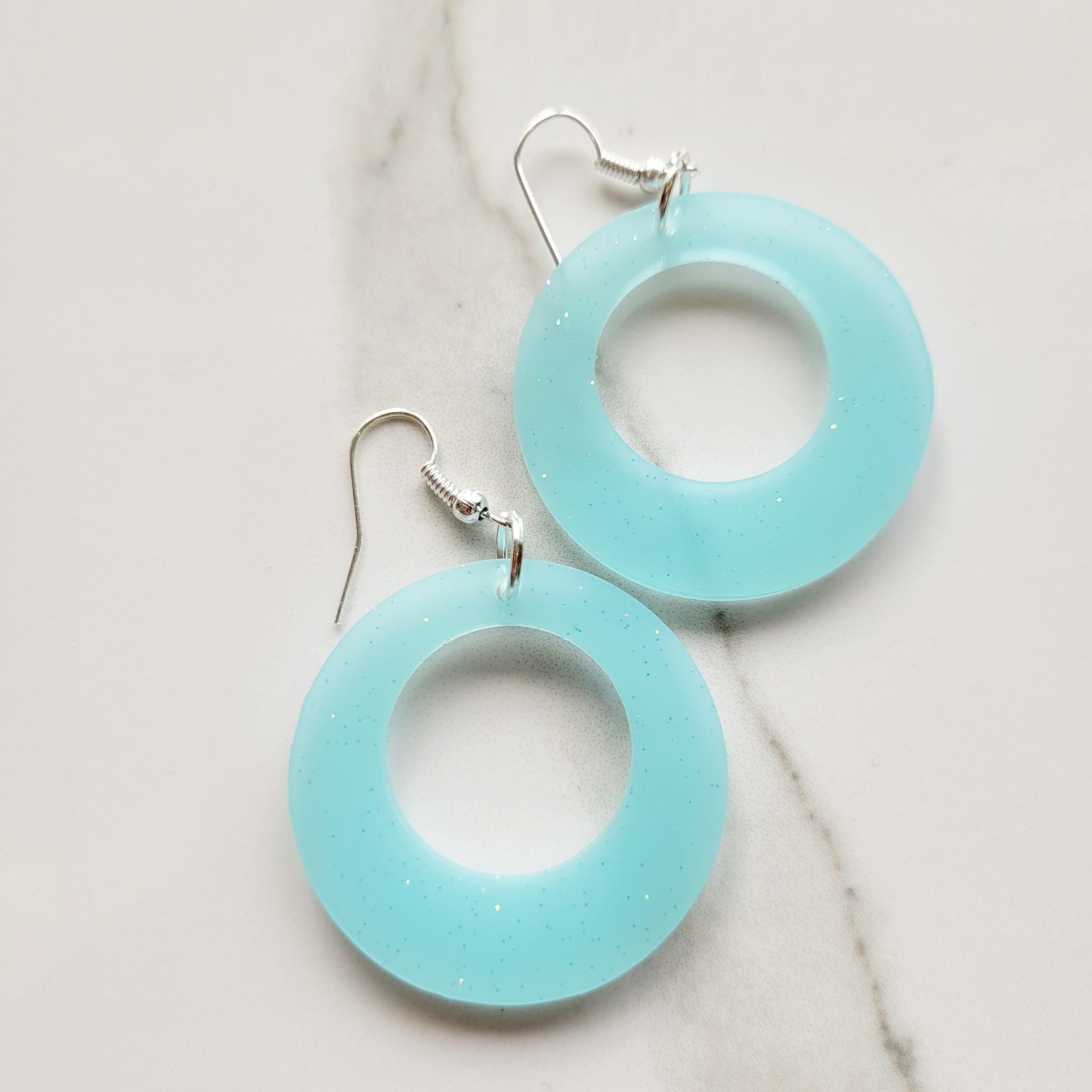 Blue sparkle resin Earrings