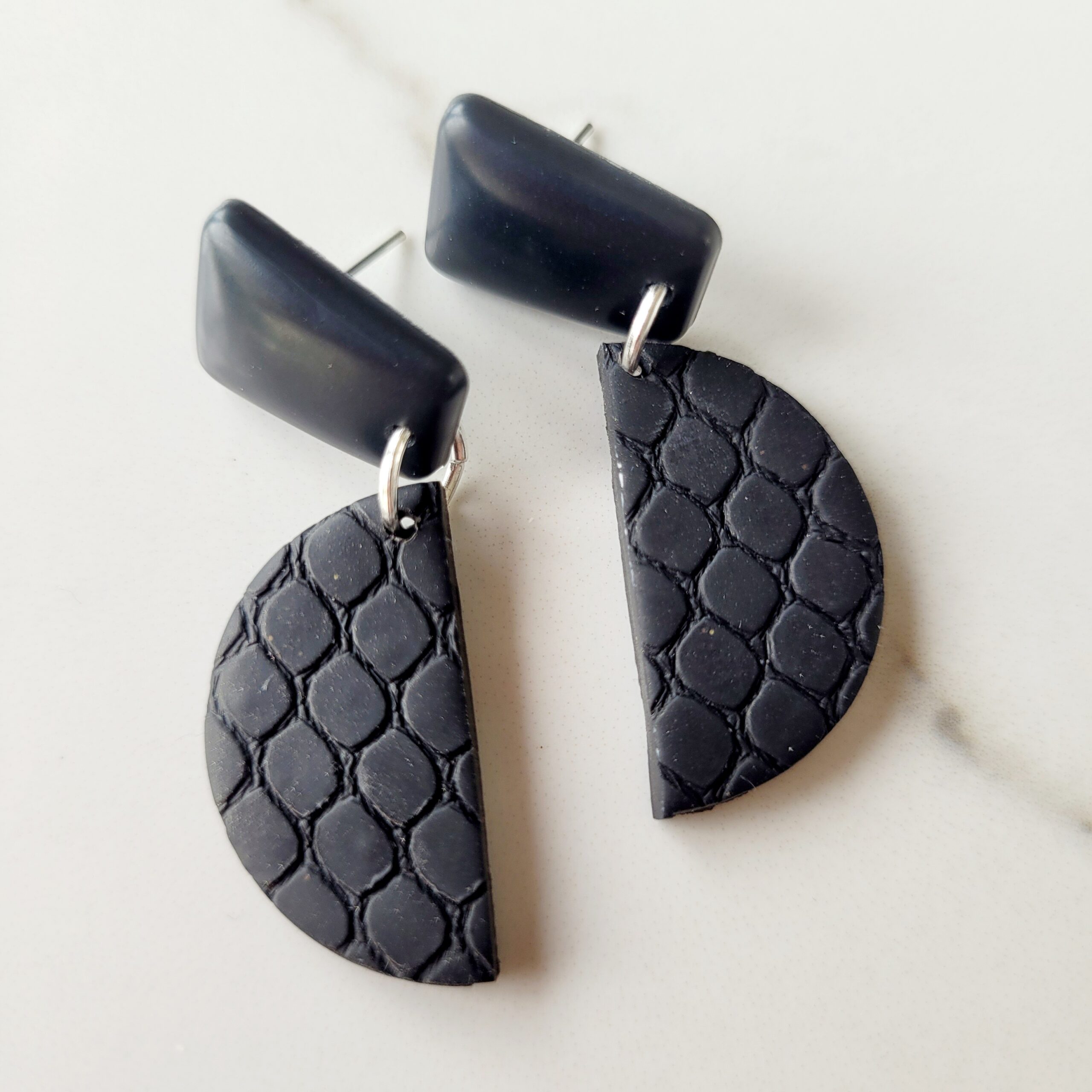 Black Resin & Clay Earring Drop 47mm