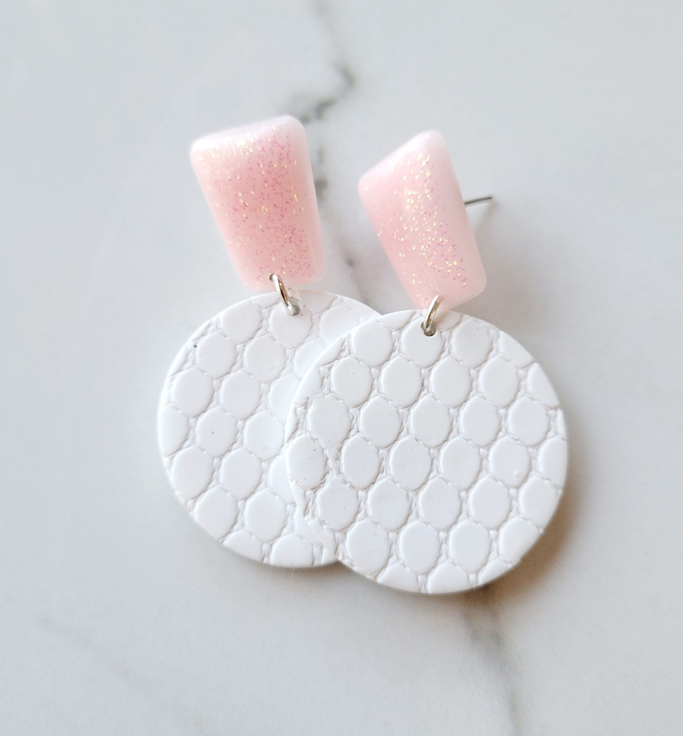 Pink/White Resin & Clay Earring Drop 47mm