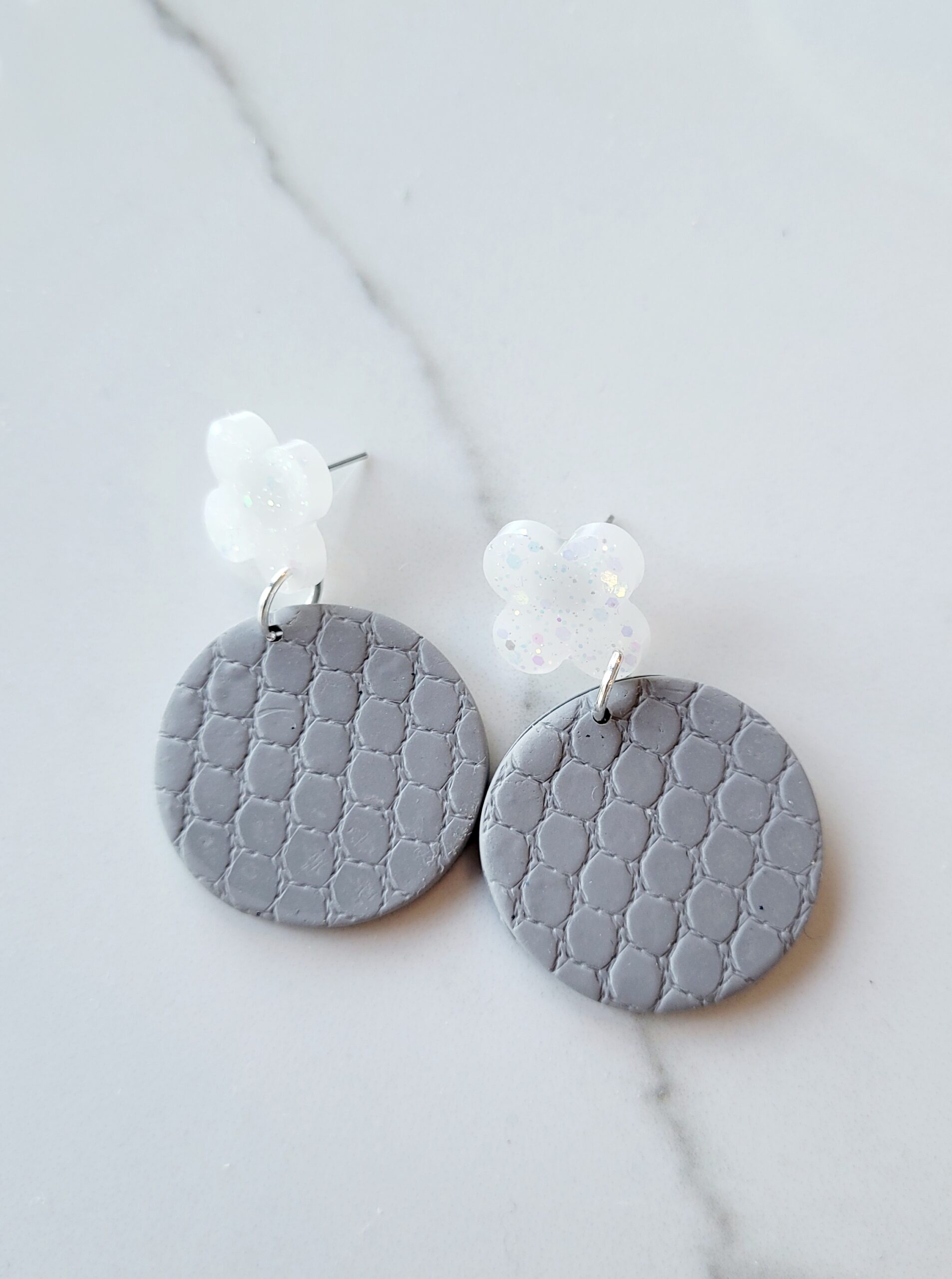 Sparkle White/Grey Resin & Clay Earring Drop 47mm