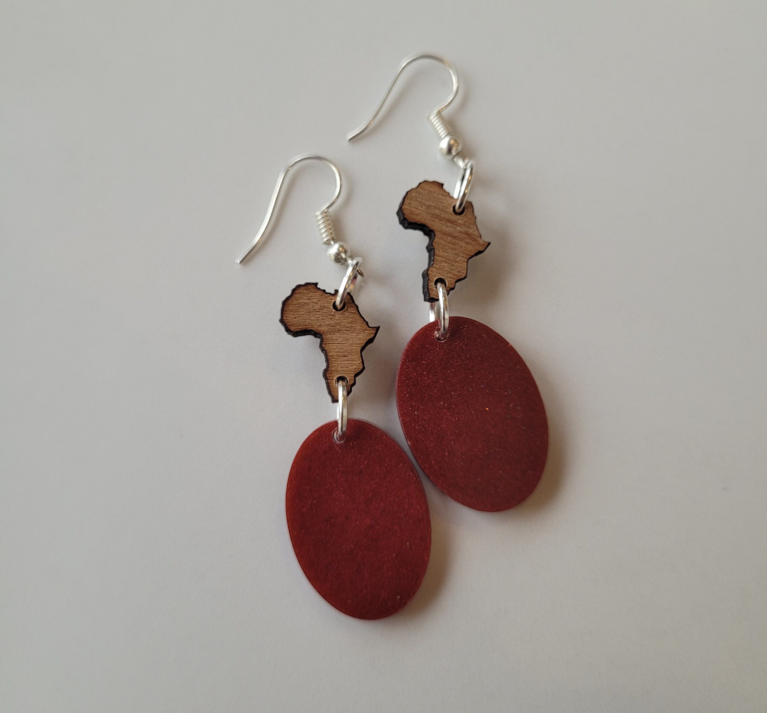 Bronze African Resin & Wood Earring Drop 40mm