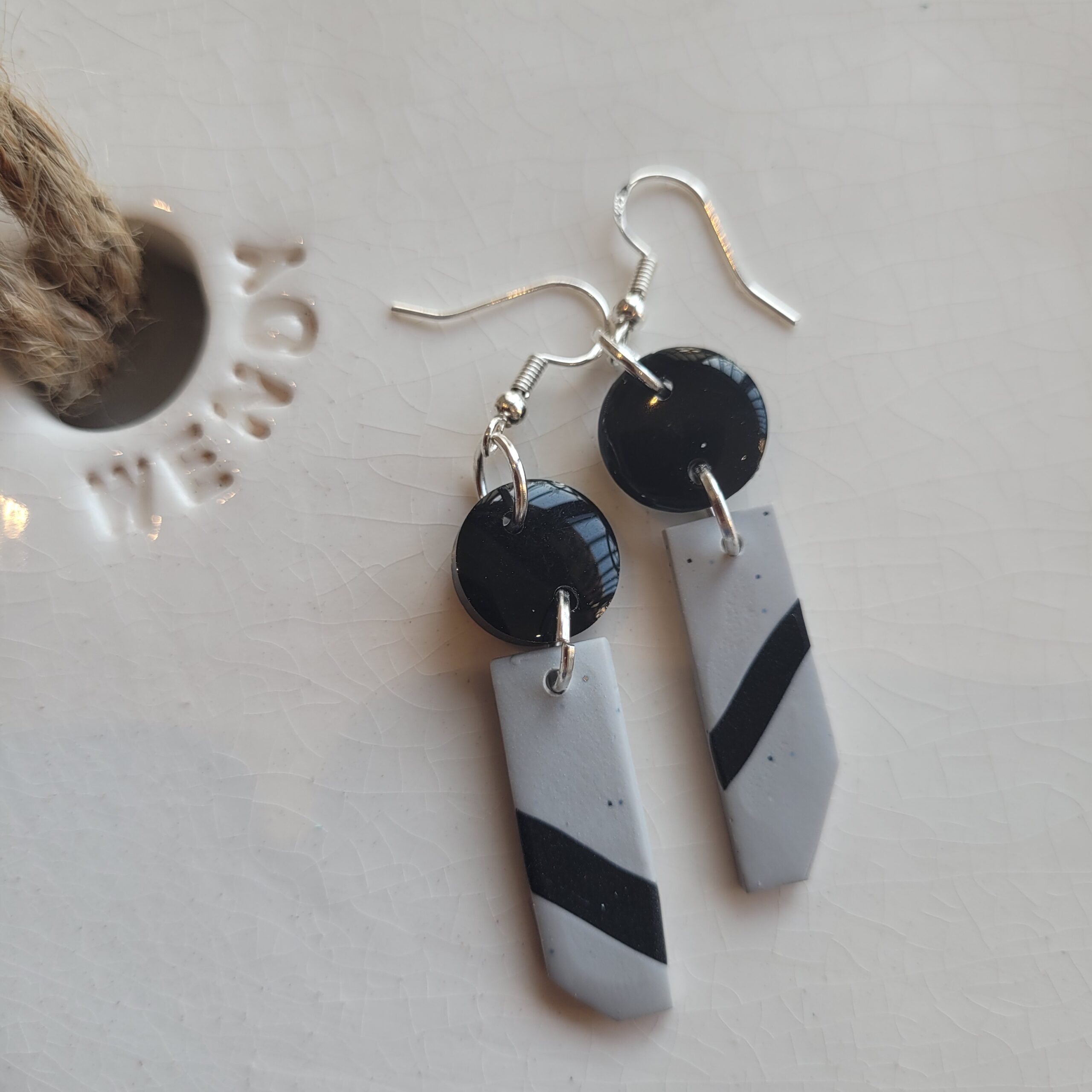 Black Grey chevron clay Earrings