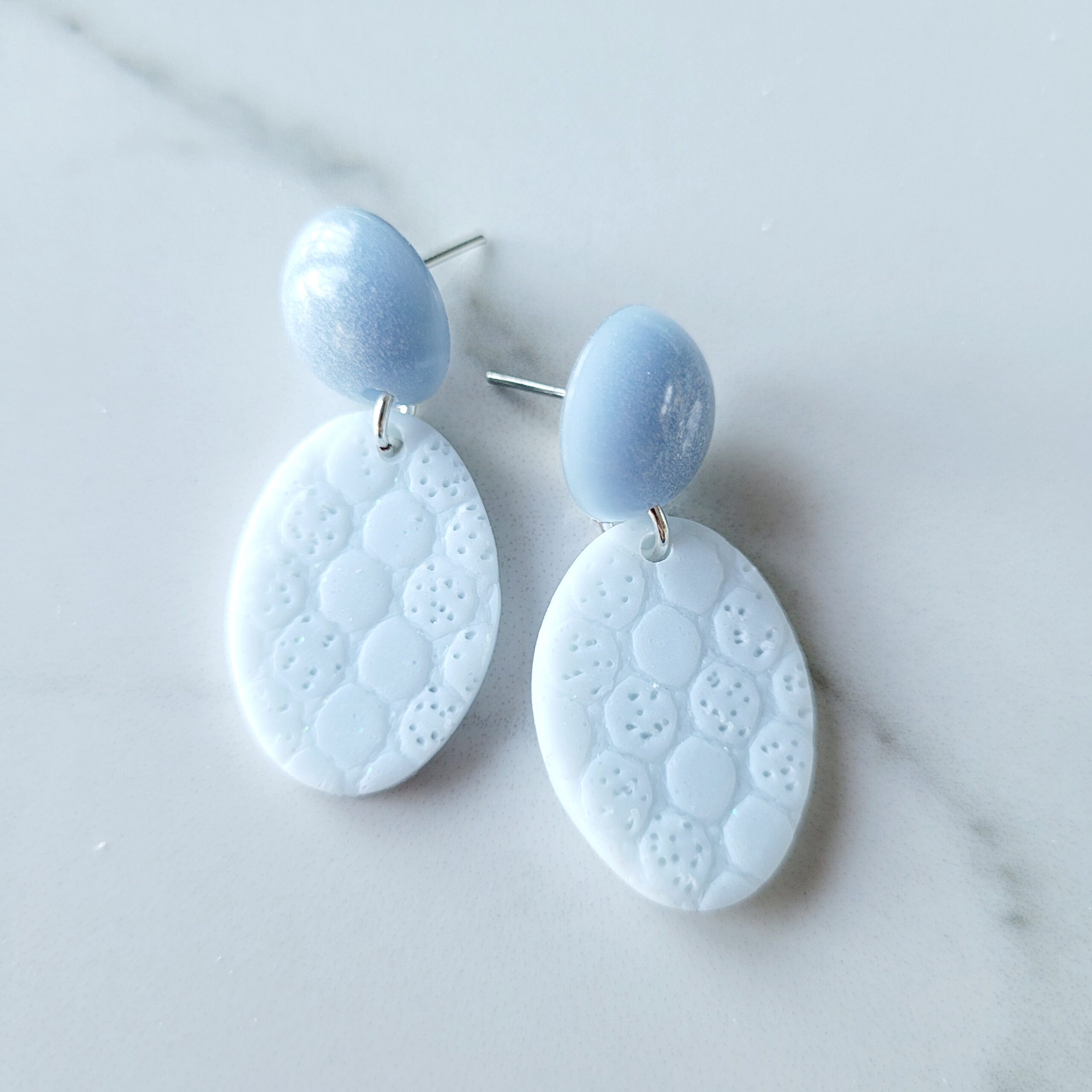 Soft Blue Mixed Resin and Clay Earrings